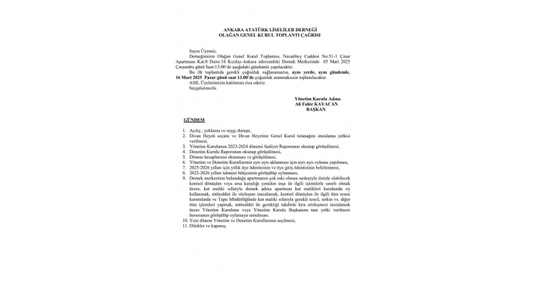 OLAĞAN GENEL KURUL TOPLANTI ÇAĞRISI